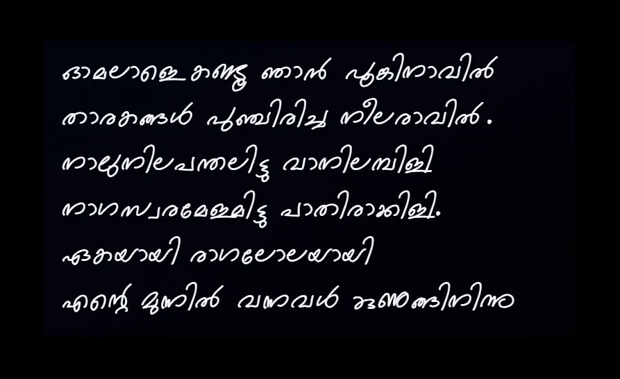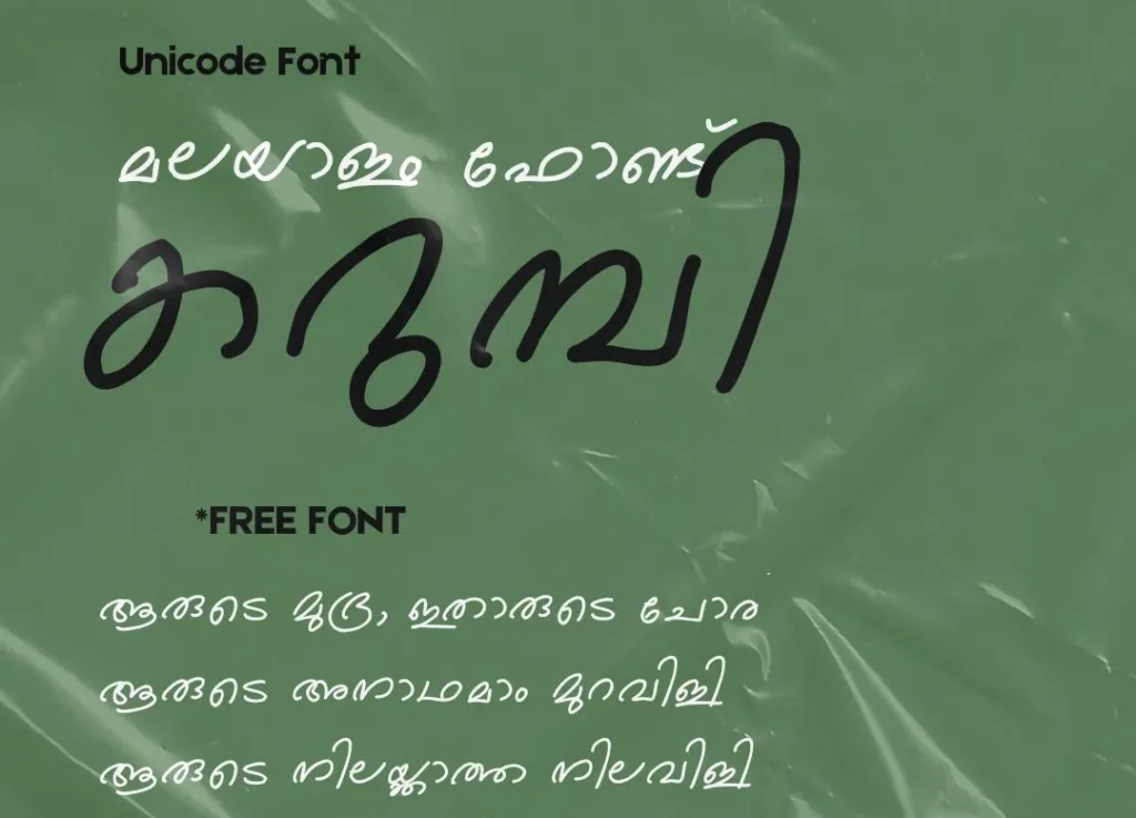 Karumbi is a Malayalam font crafted specifically for impactful titles. This elegant typeface brings a touch of sophistication to your designs, making headlines truly stand out.