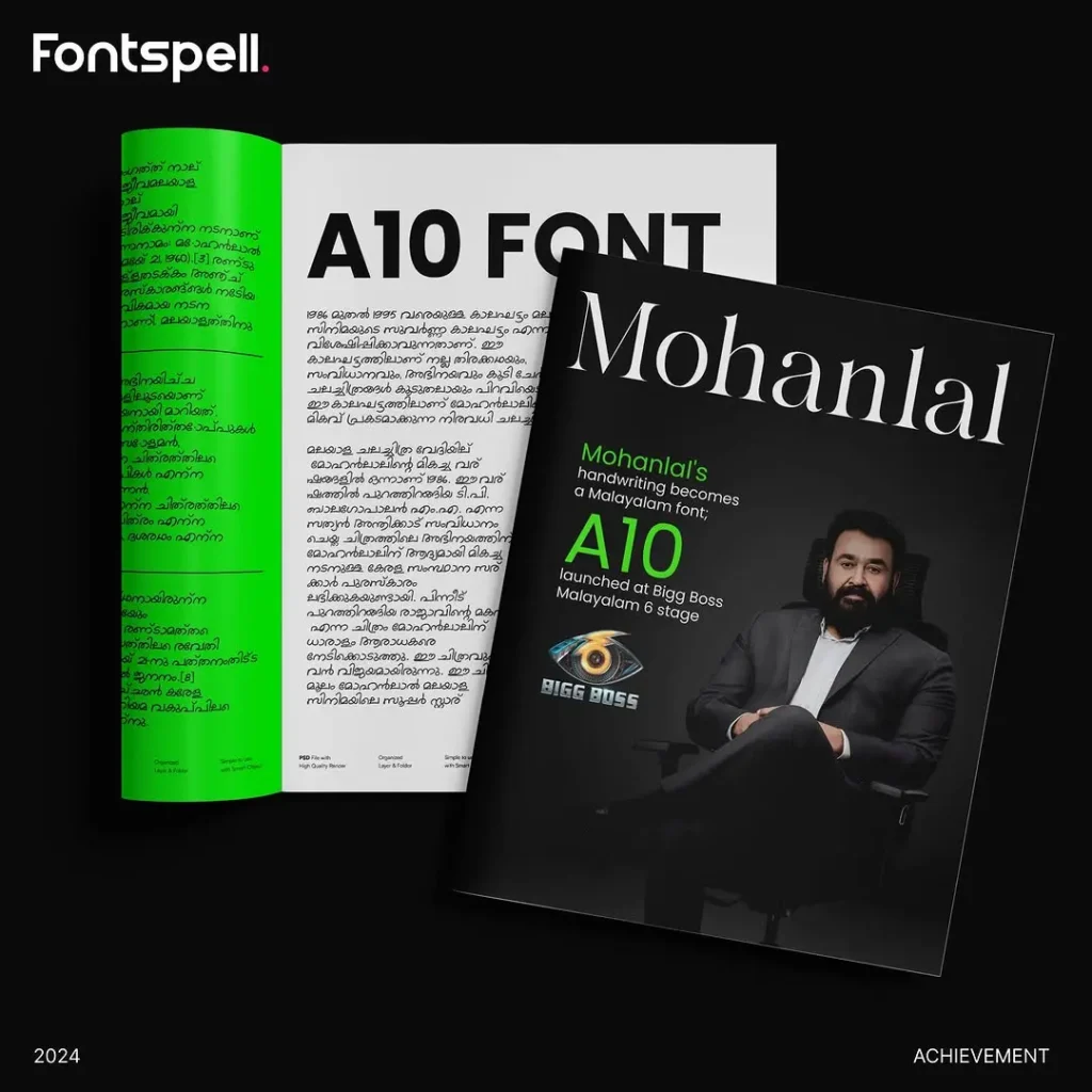 നമ്മുടെ ഏവരുടെയും പ്രിയപ്പെട്ട ലാലേട്ടന്റെ ജന്മദിനത്തിൽ, അദ്ദേഹത്തിന്റെ കൈയെഴുത്തിന്റെ പ്രതിരൂപമായ ‘A10’ ഫോണ്ട് ഡിജിറ്റൽ ഫോണ്റ്റായി പുറത്തിറക്കിയിരിക്കുന്നു. ഒരു പ്രധാന പ്രത്യേകത എന്തെന്നാൽ, ഈ ഫോണ്ട് എല്ലാവർക്കും സൗജന്യമായി ലഭ്യമായിരിക്കും. ഒരു നടന്റെ കൈയെഴുത്ത് ആദ്യമായാണ് ഡിജിറ്റൽ ഫോണ്ടിലേക്ക് മാറ്റപ്പെടുന്നത്.
